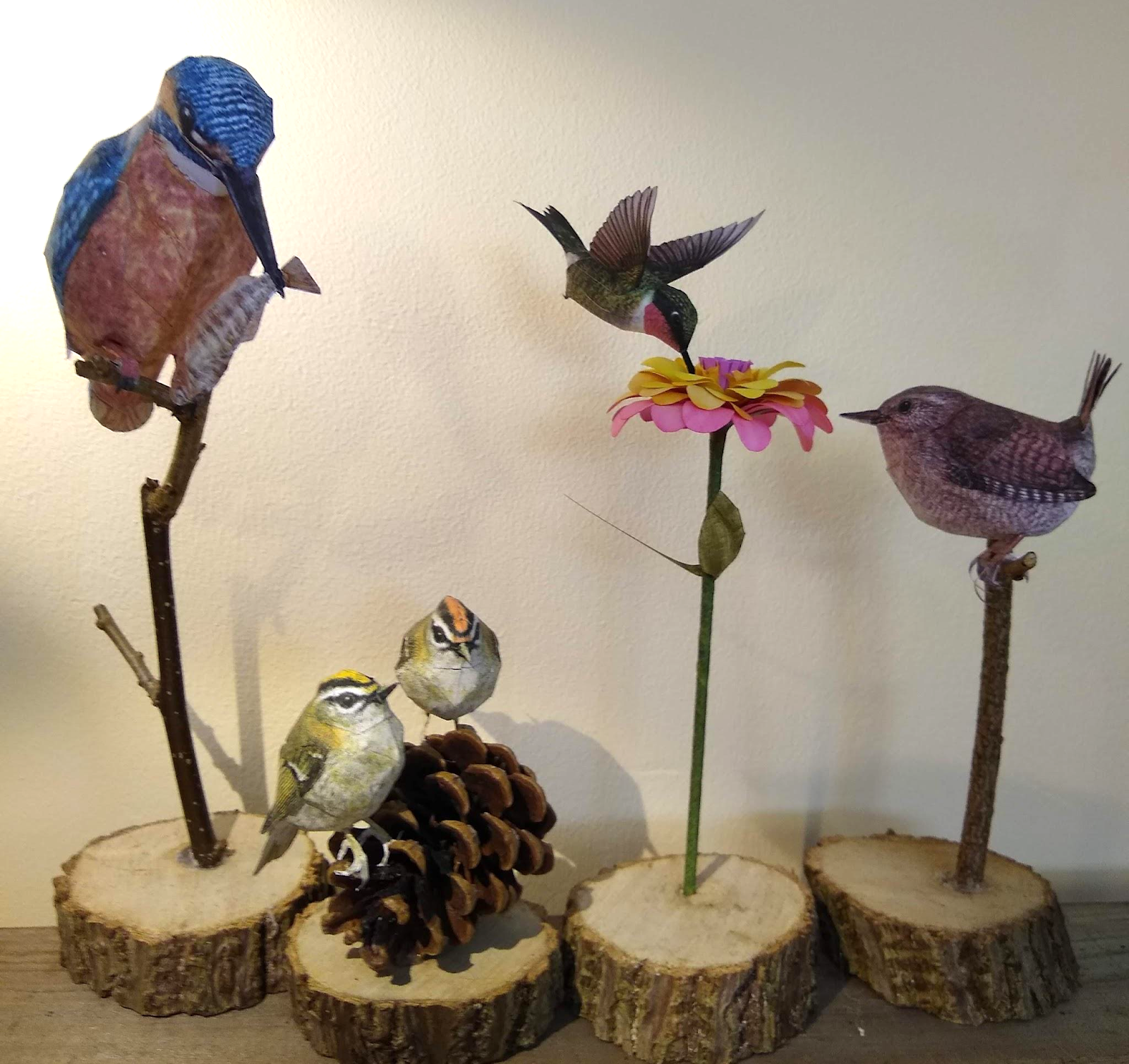 Johann is an amazing artist who designs, assembles and paints models of life-sized birds. It can take him 2 weeks to produce each model. He generously puts some models on his website for free. You can print off a sheet that contains all the parts you need. If you don’t like fiddly things or cutting out tiny bits of paper then this isn’t for you. But, if you are like me, you will enjoy making these models. Here are some of the birds I made - I've attached them to twigs/pine cones for a more natural effect. My attempts are not as perfectly finished as Johann’s but I really enjoyed making them.